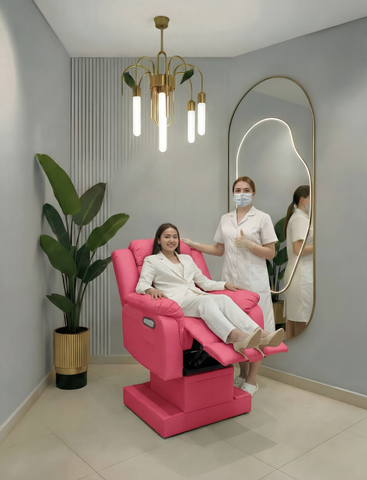Кресло реклайнер трехмоторное на электроподиуме РОЗОВОЕ