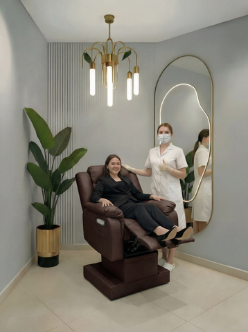 Кресло реклайнер трехмоторное на электроподиуме КОРИЧНЕВОЕ