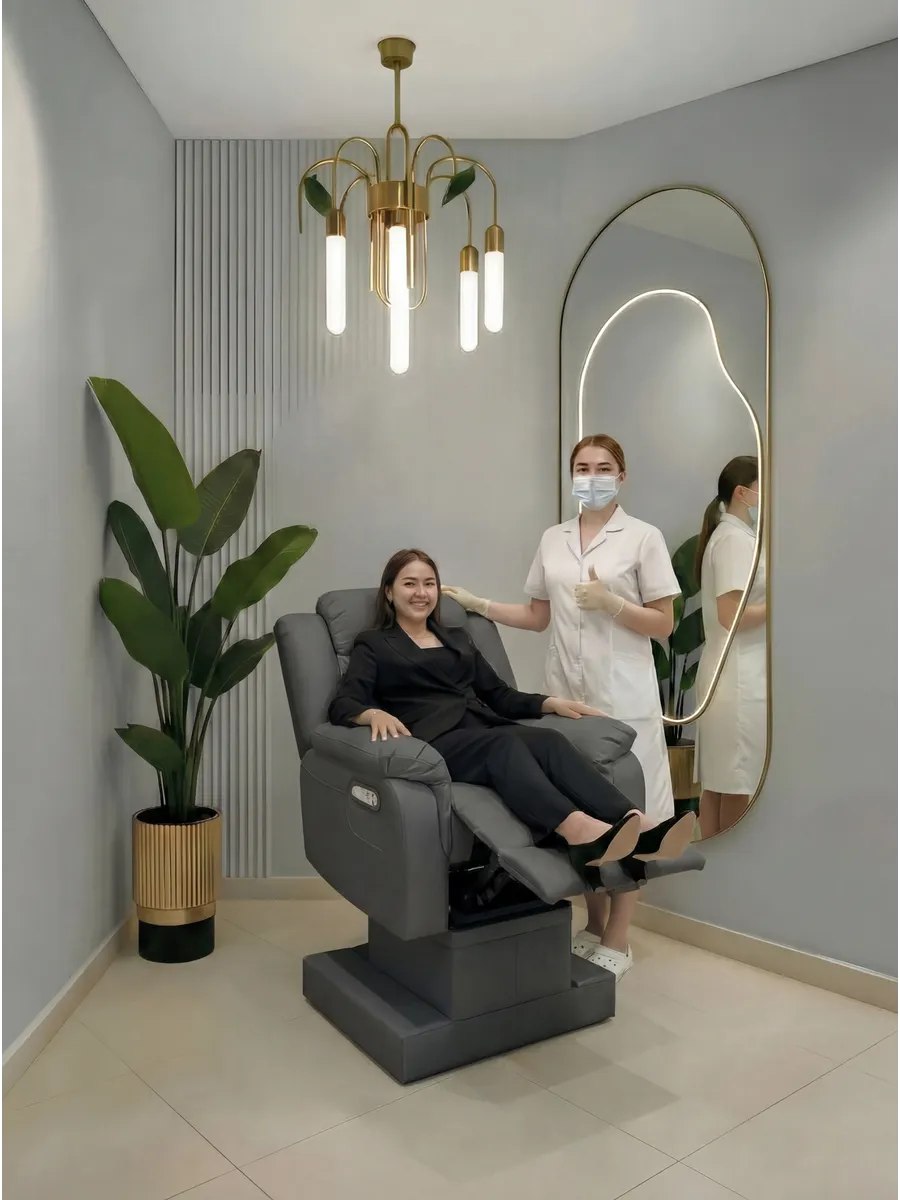 Кресло реклайнер идеально подходит для наращивания ресниц, педикюра и для других видов процедур.